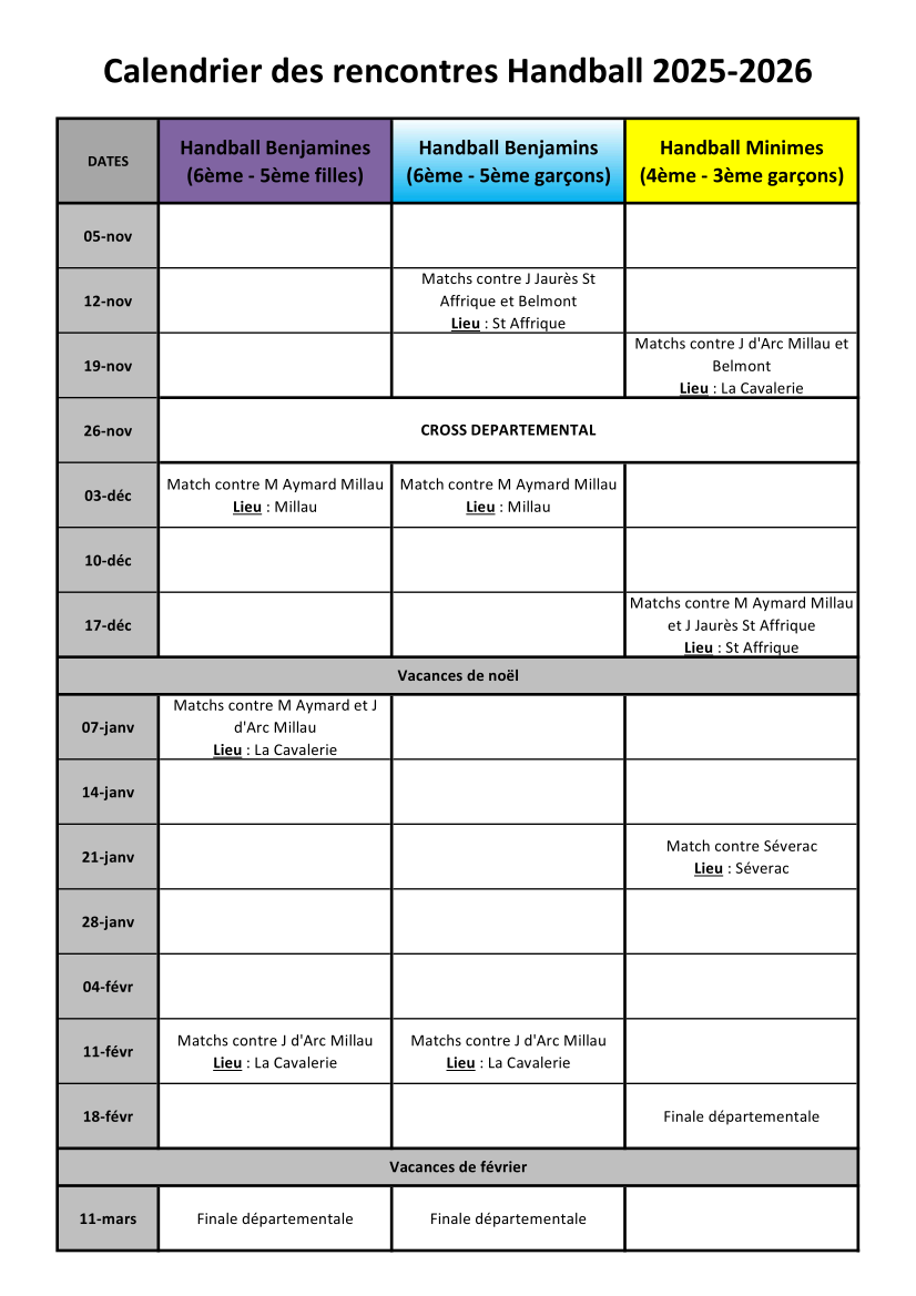 La saison de handball commence. Voici le calendrier des rencontres de notre district. Merci de réserver ces dates.